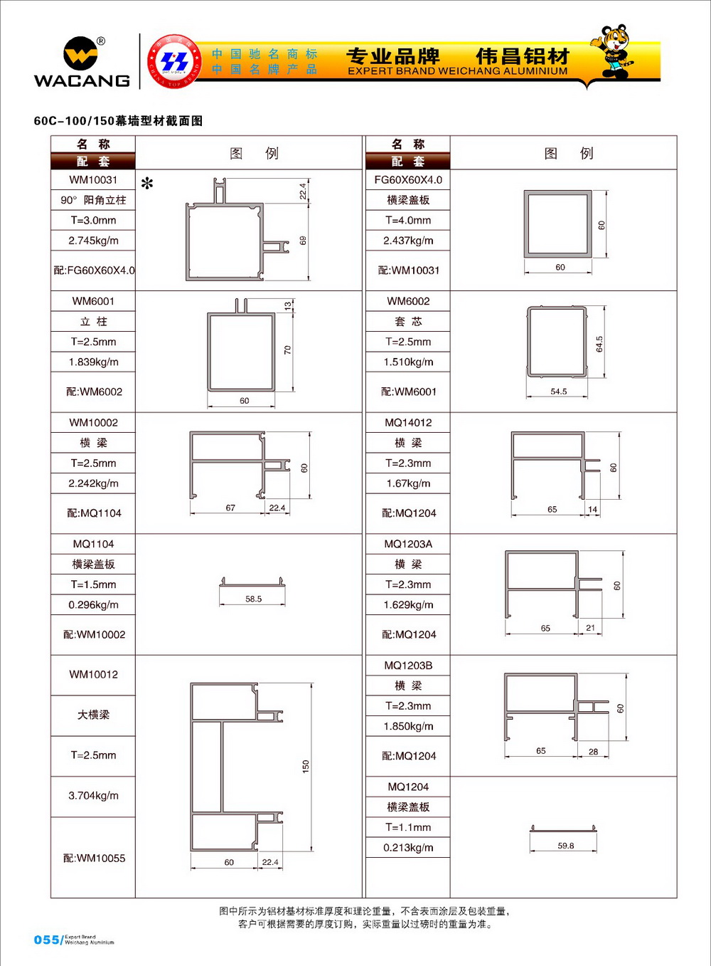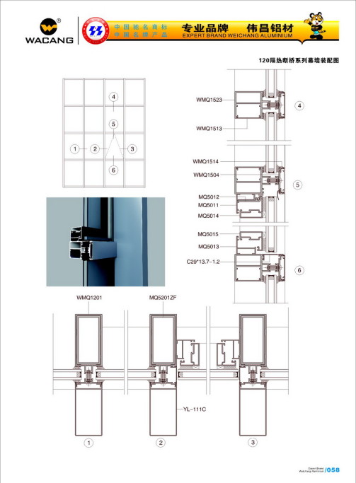 - Фасад с открытой/закрытой рамой серии 100,110,120,130,140,150,160,180 (ширина 65)